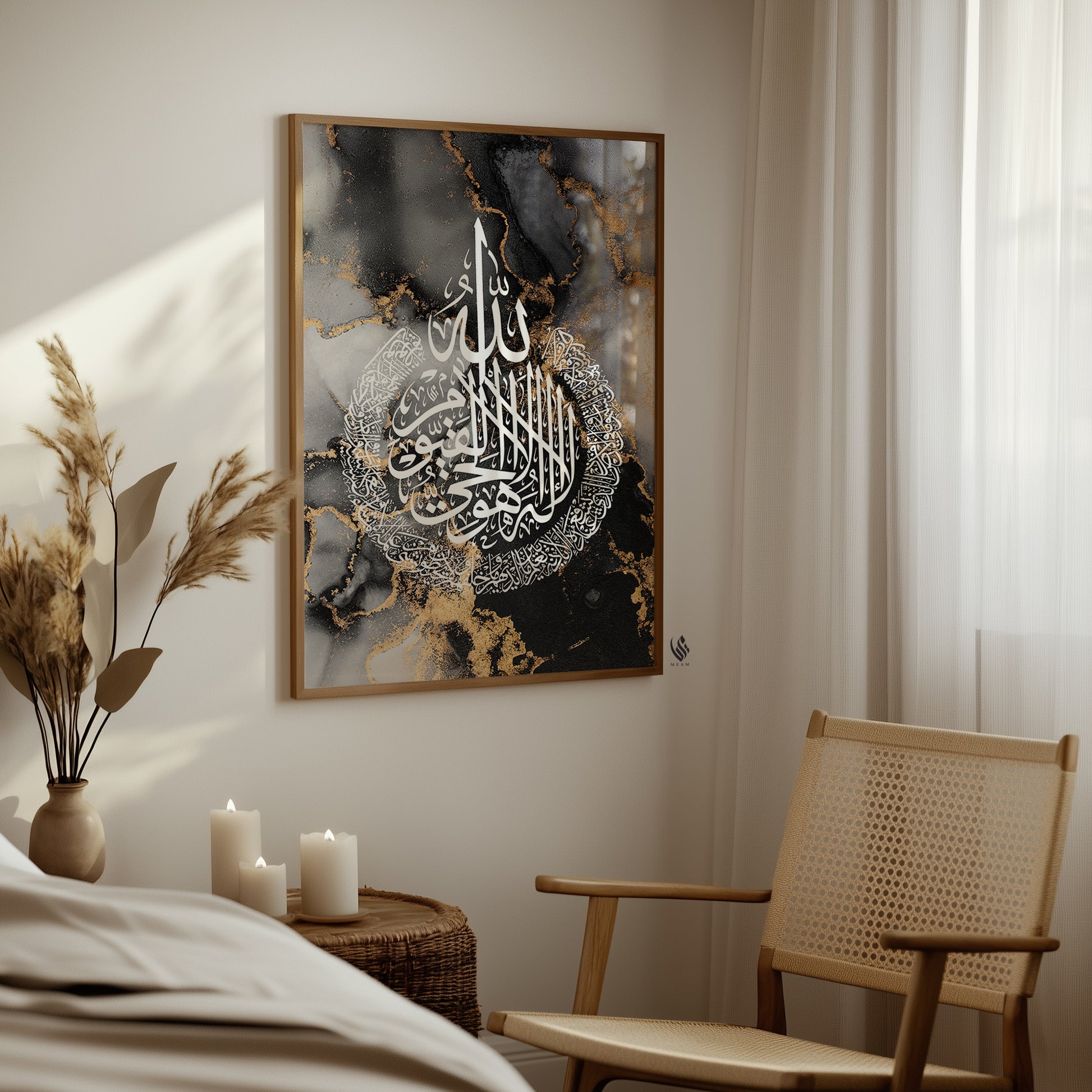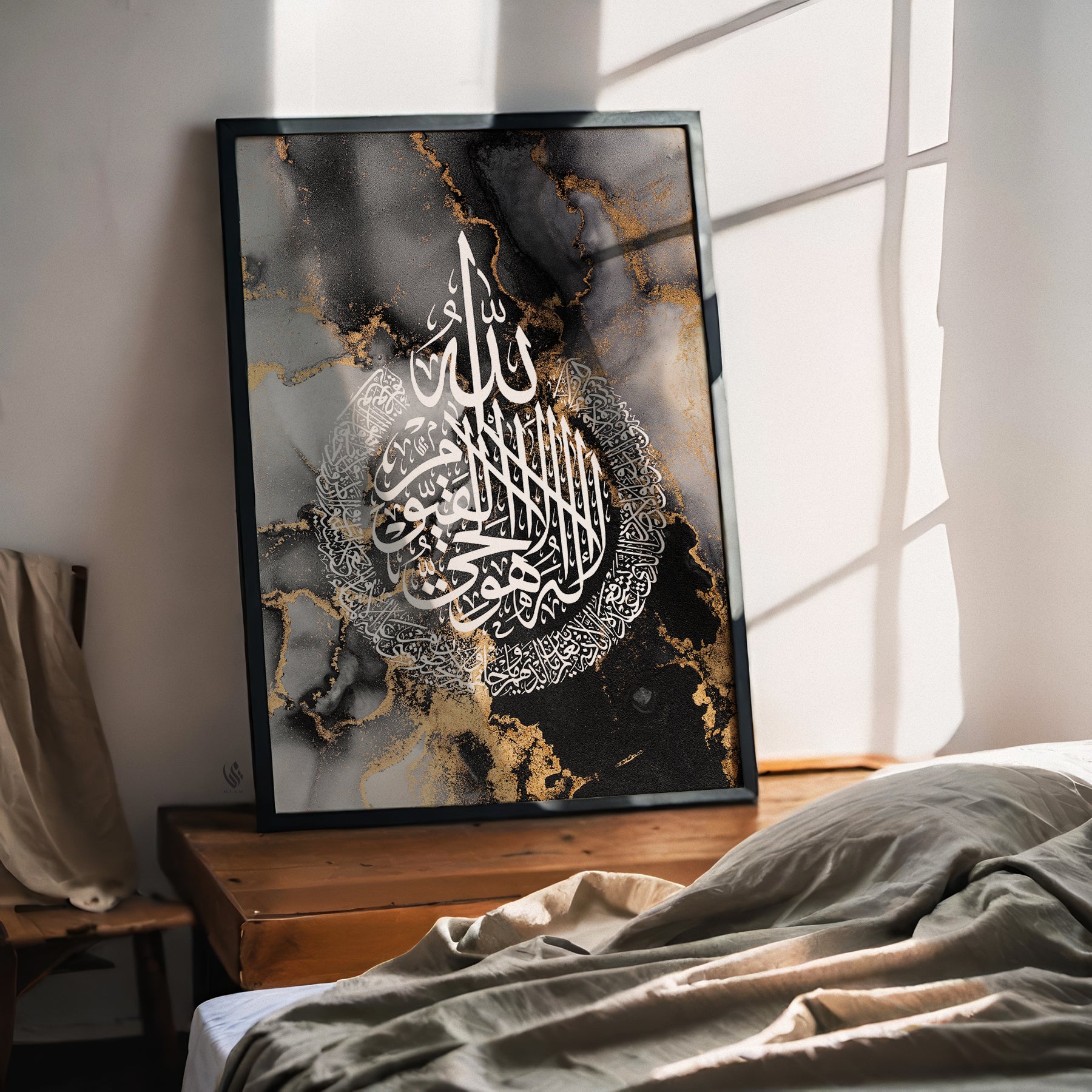 Ayatul Kursi, Islamic Wall Art, Black Marble D95