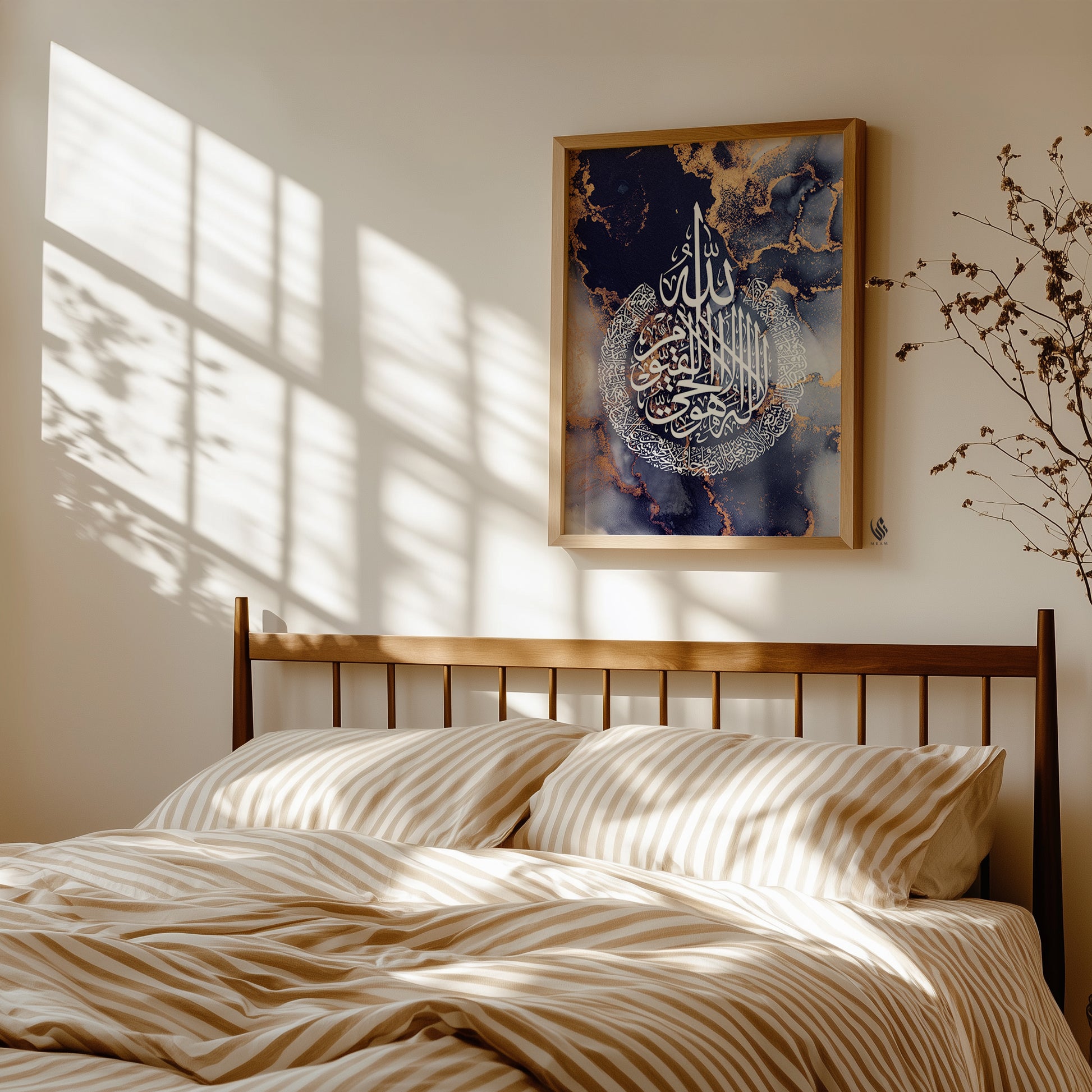 Ayatul Kursi, Islamic Wall Art, Navy Blue Marble D101