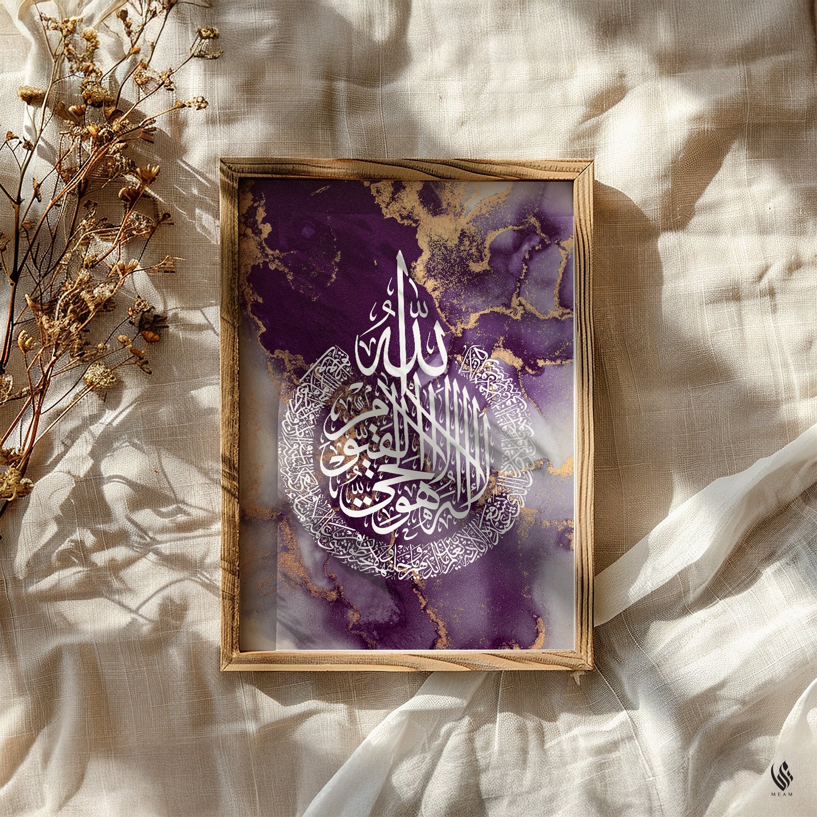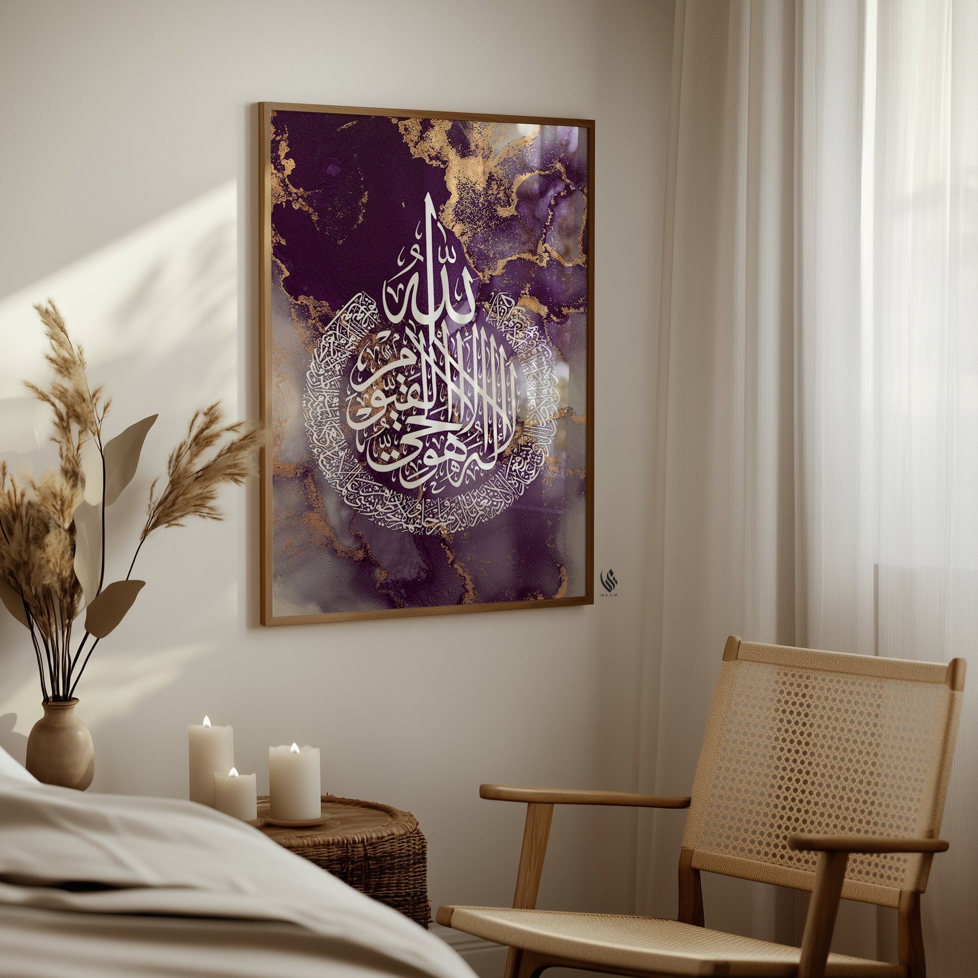 Ayatul Kursi, Islamic Wall Art, Purple Marble D98