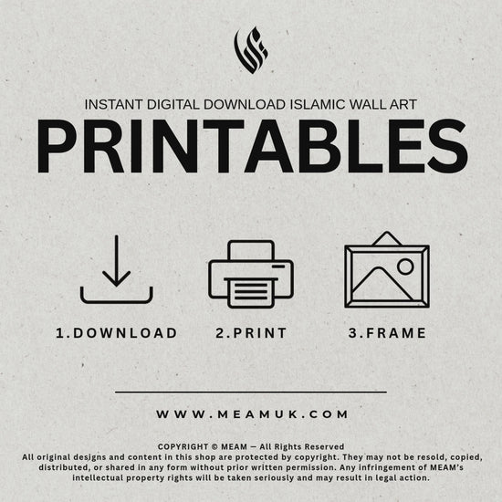 We offer a wide range of Islamic wall art prints and posters. Our collections feature variety of themes, from architectural designs that showcase majestic mosques to intricate calligraphy and symbolic Islamic motifs, all to remind us of our faith and the blessings of Allah (swt).