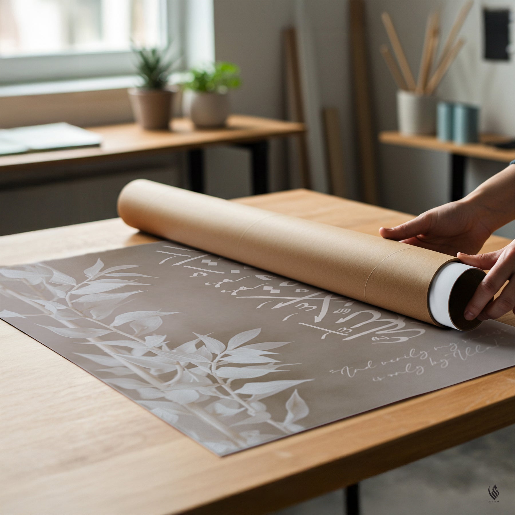 • Small Prints: Packaged in a flat, rigid cardboard box suitable for posters up to A4.