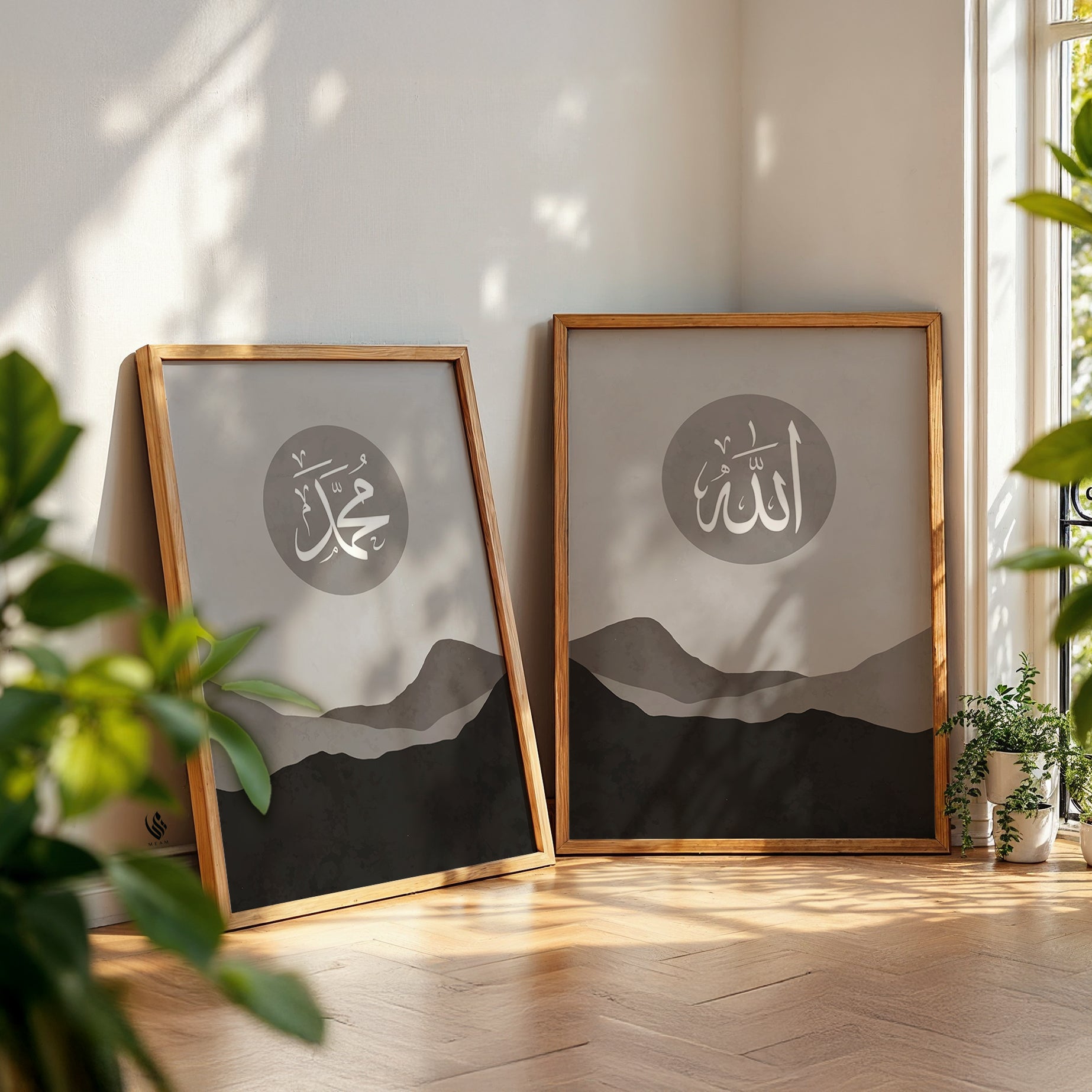 Set of 2 Allah & Muhammad, Boho Landscape Wall Prints, D106