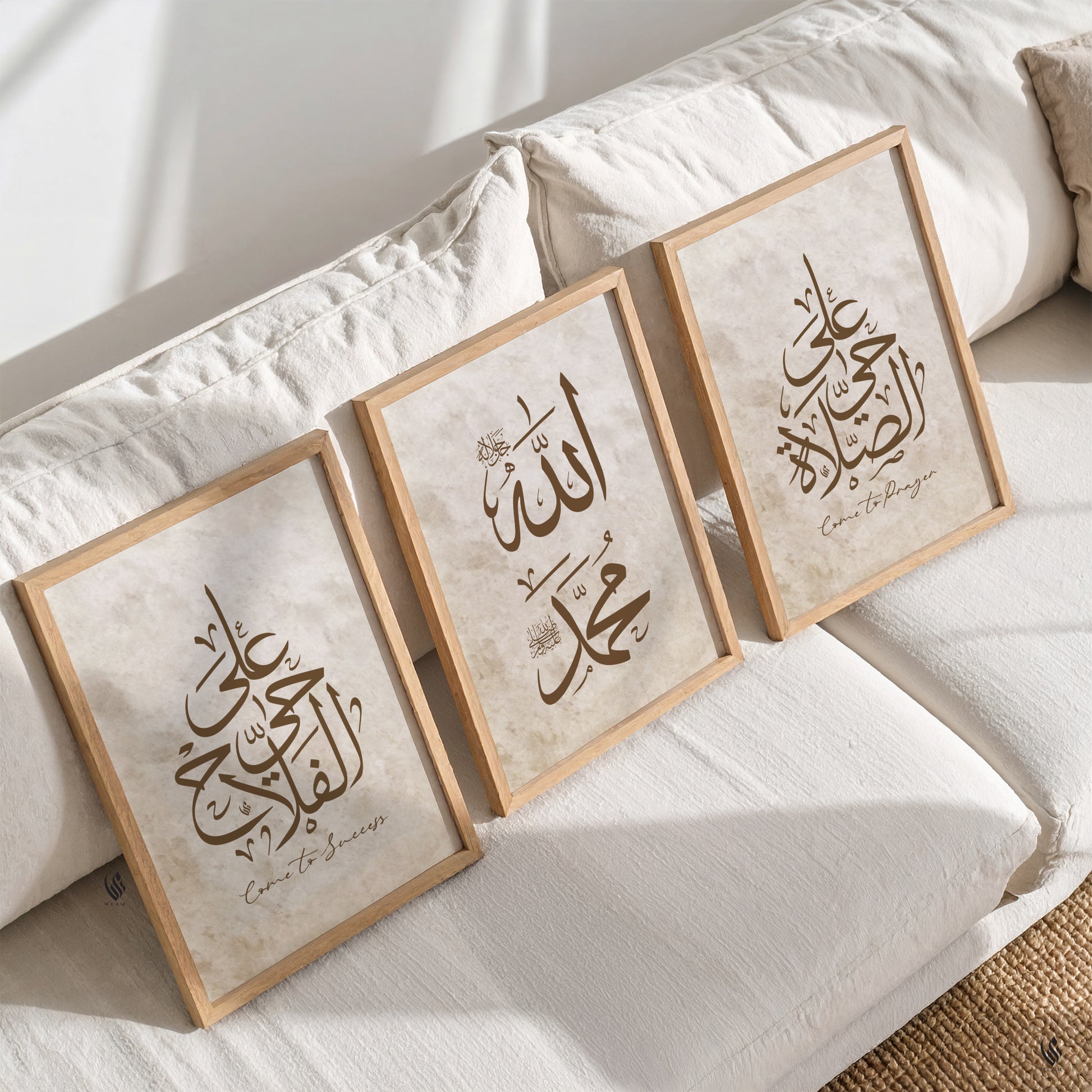 Set of 3 Beige & Brown, Come to Salah Success D130