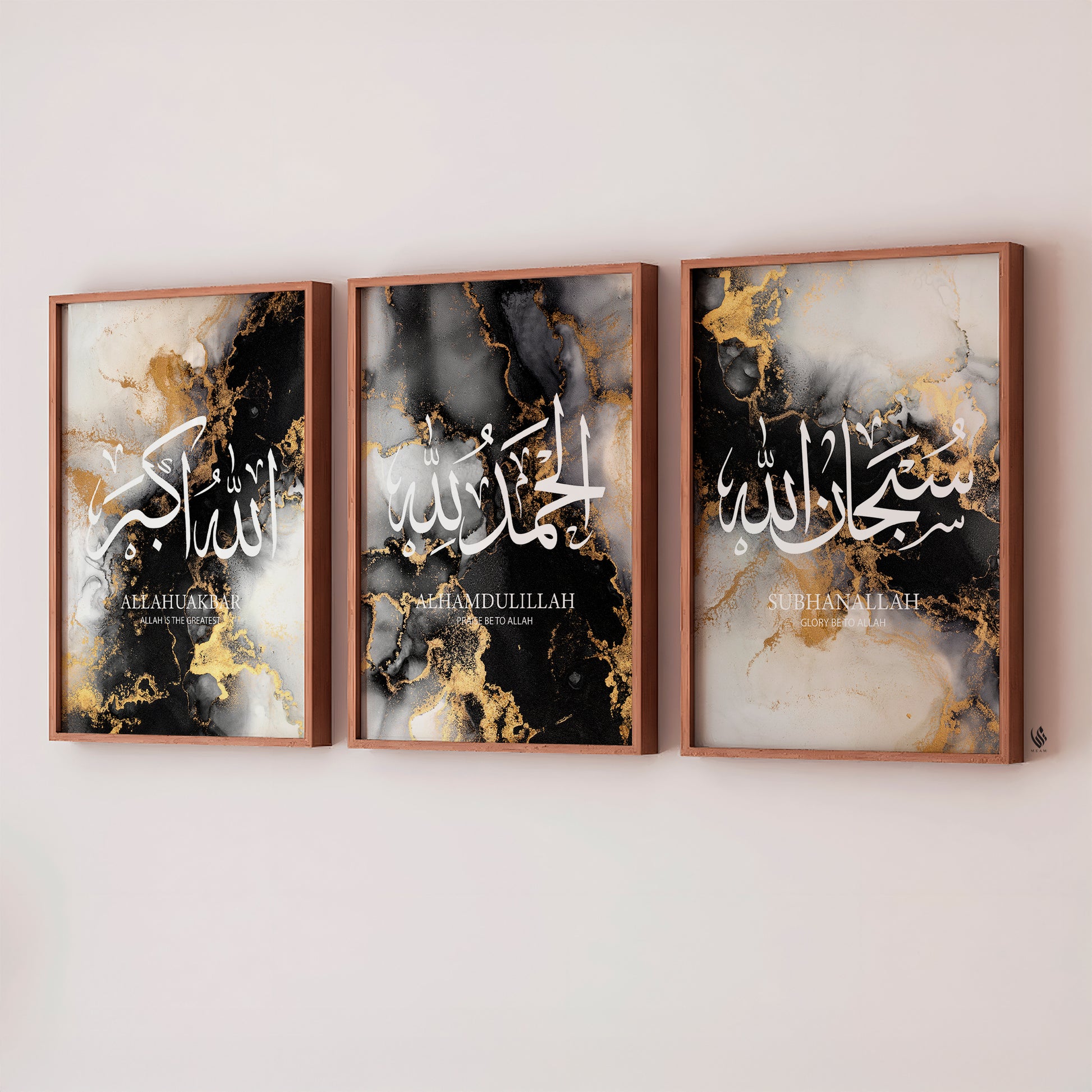 Set of 3 Black & Gold Zhikr Islamic Wall Art D126