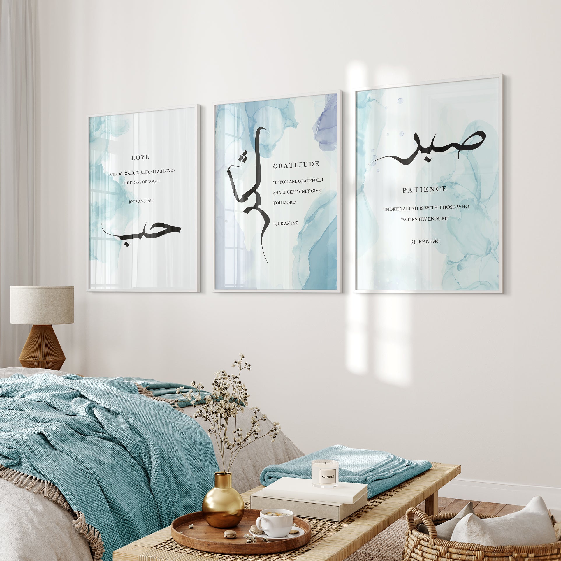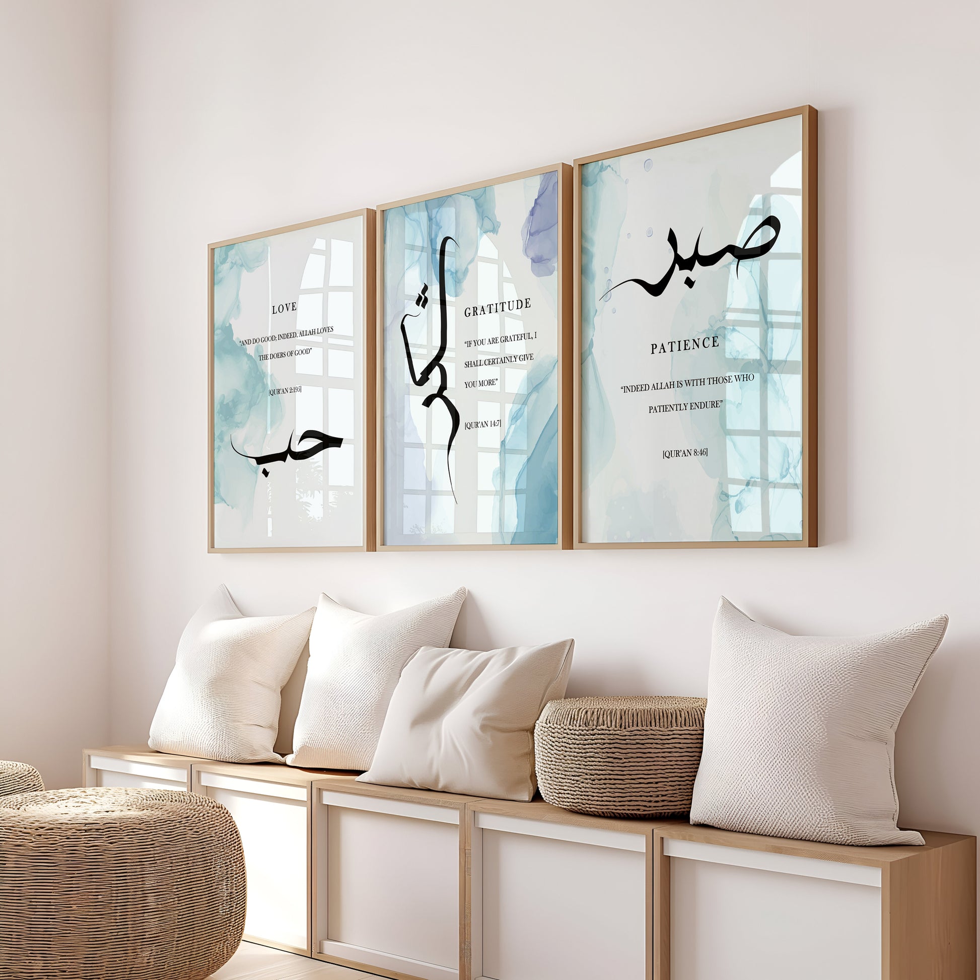 Set of 3 Blue Watercolour Sabr Shukr And Hubb D73